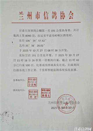 中国信鸽协会2025年度国家赛兰州赛区比赛集锦