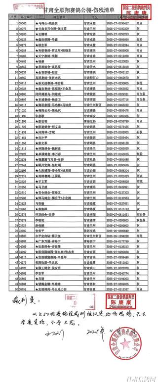 兰州“发现者”2024年秋季鸽王挑战赛第二轮单羽赛明细
